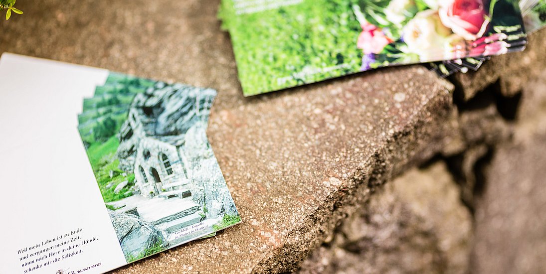 Wir besitzen eine hauseigene Druckerei & gestalten jegliche Art von Trauerdruck. Wir beraten Sie bei Erstellung von Sterbe- & Andenkbildern, Partenzetteln & Dankeskarten. Die Veröffentlichung der Todesanzeigen in Tageszeitungen (DE & IT) übernehmen wir.