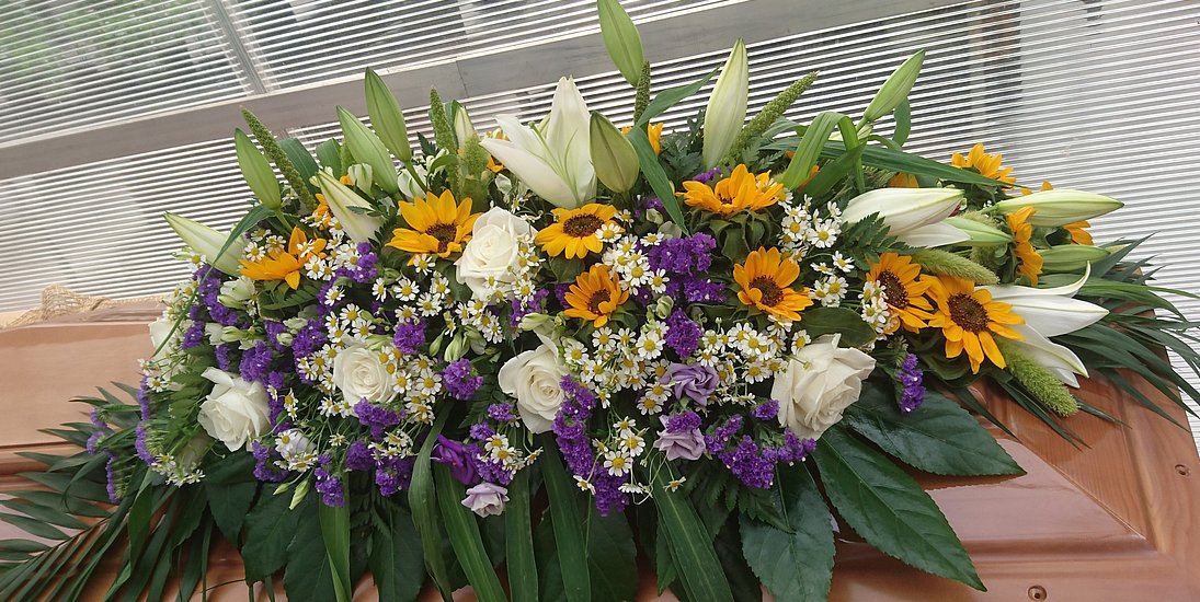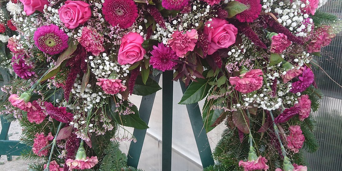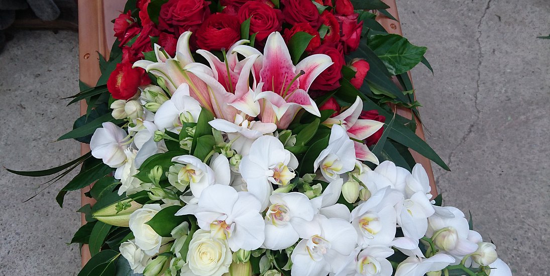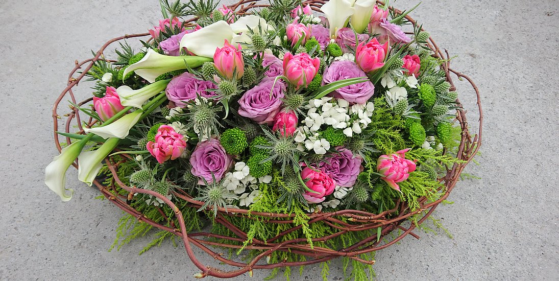 Denn als Florist nimmt man dabei eine besondere Rolle ein: man spendet den Hinterbliebenen Trost, indem man die Dankbarkeit und Zuneigung in Form eines schönen Trauerschmucks zur Geltung bringt. Als Zeichen für die eigene Trauer oder als letzte Gabe an den verstorbenen Menschen, sind Blumen von jeher Bestandteil vieler Begräbnisrituale. Mit einem beratenden und feinfühligen Gespräch, kann den Trauernden geholfen werden, den richtigen Blumenschmuck zum Ausdruck der Trauer als auch von Liebe und Wertschätzung zu finden.