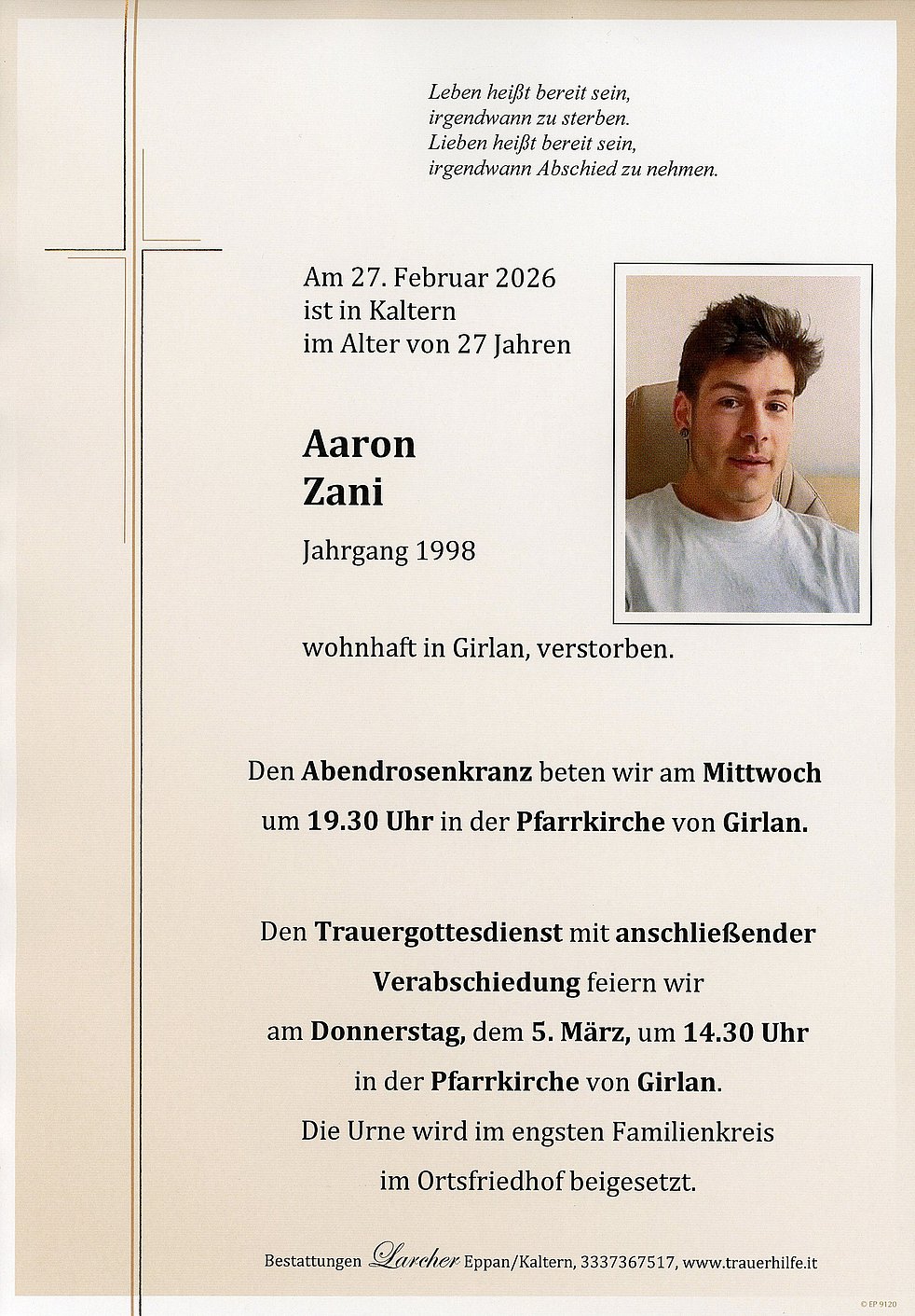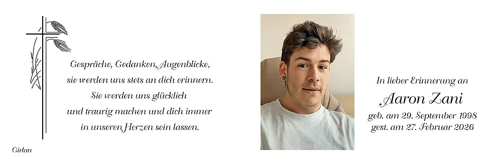Im Sinne des Verstorbenen möge man für „Südtirol hilft“ (IBAN: IT47K0808111600000300001112) spenden.