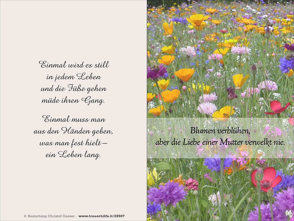 Vergelt’s Gott allen, die an den Seelenrosenkränzen und an der Trauerfeier von unserer lieben Mama teilnehmen.