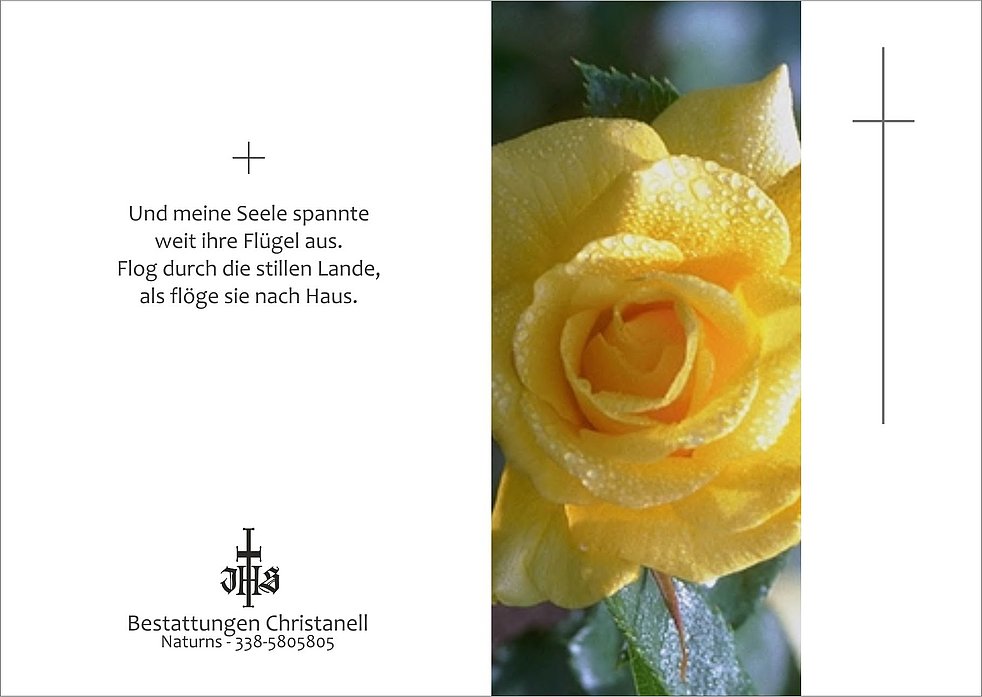Statt Blumen auf das Grab zu legen, möge man für die Pfarrkirche von Partschins oder die Töller Kirche spenden.