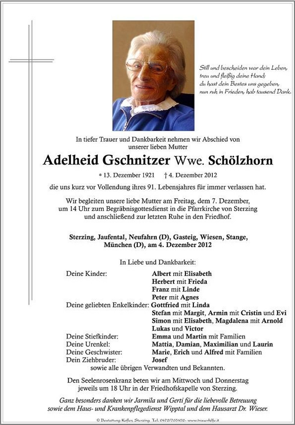um 14 Uhr zum Begräbnisgottesdienst in die Pfarrkirche von Sterzing