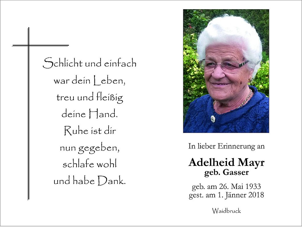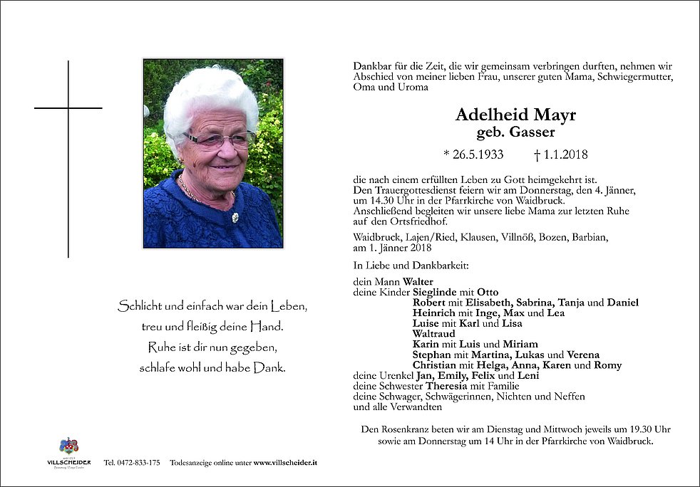 Den Trauergottesdienst feiern wir am Donnerstag, den 4. Jänner,