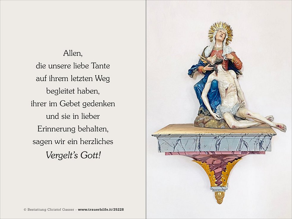 Wir danken allen, die an den Rosenkränzen und an der Beerdigung teilnehmen und unsere liebe Tante in guter Erinnerung behalten.