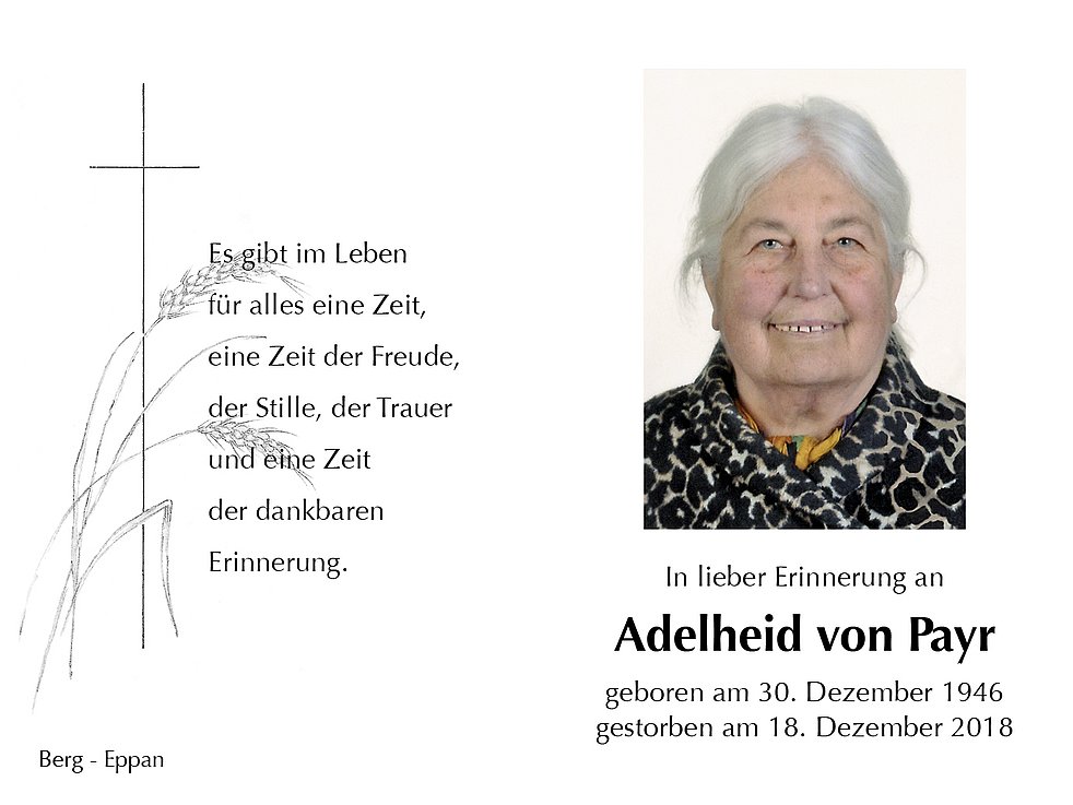 Anschließend begleiten wir unsere liebe Verstorbene auf den Ortsfriedhof. Den Abendrosenkranz beten wir am Freitag, um 19.30 Uhr in der Pfarrkirche von St. Pauls.