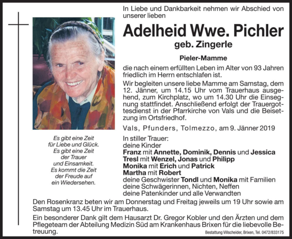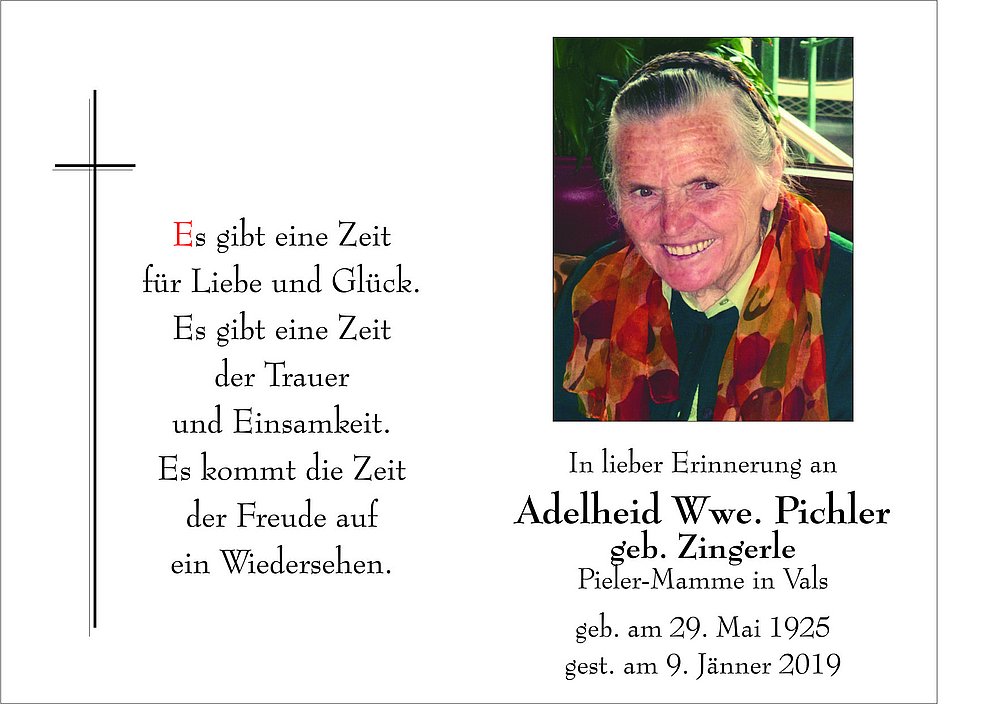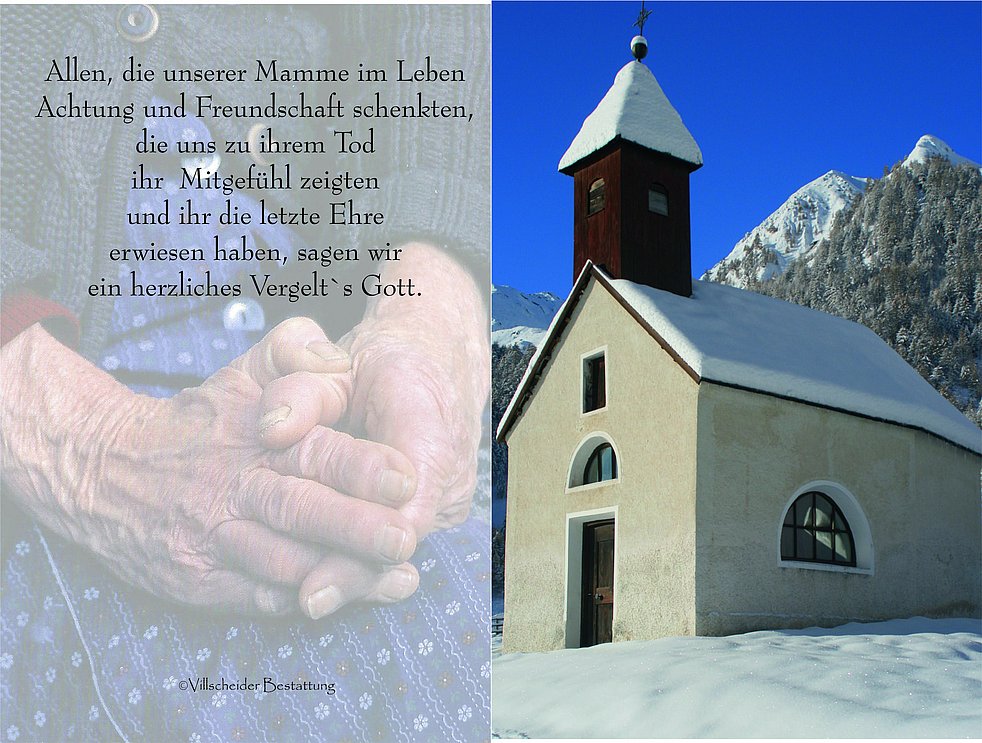 Begräbnisgottesdienst: 12.01. - 14:30 Uhr Vals