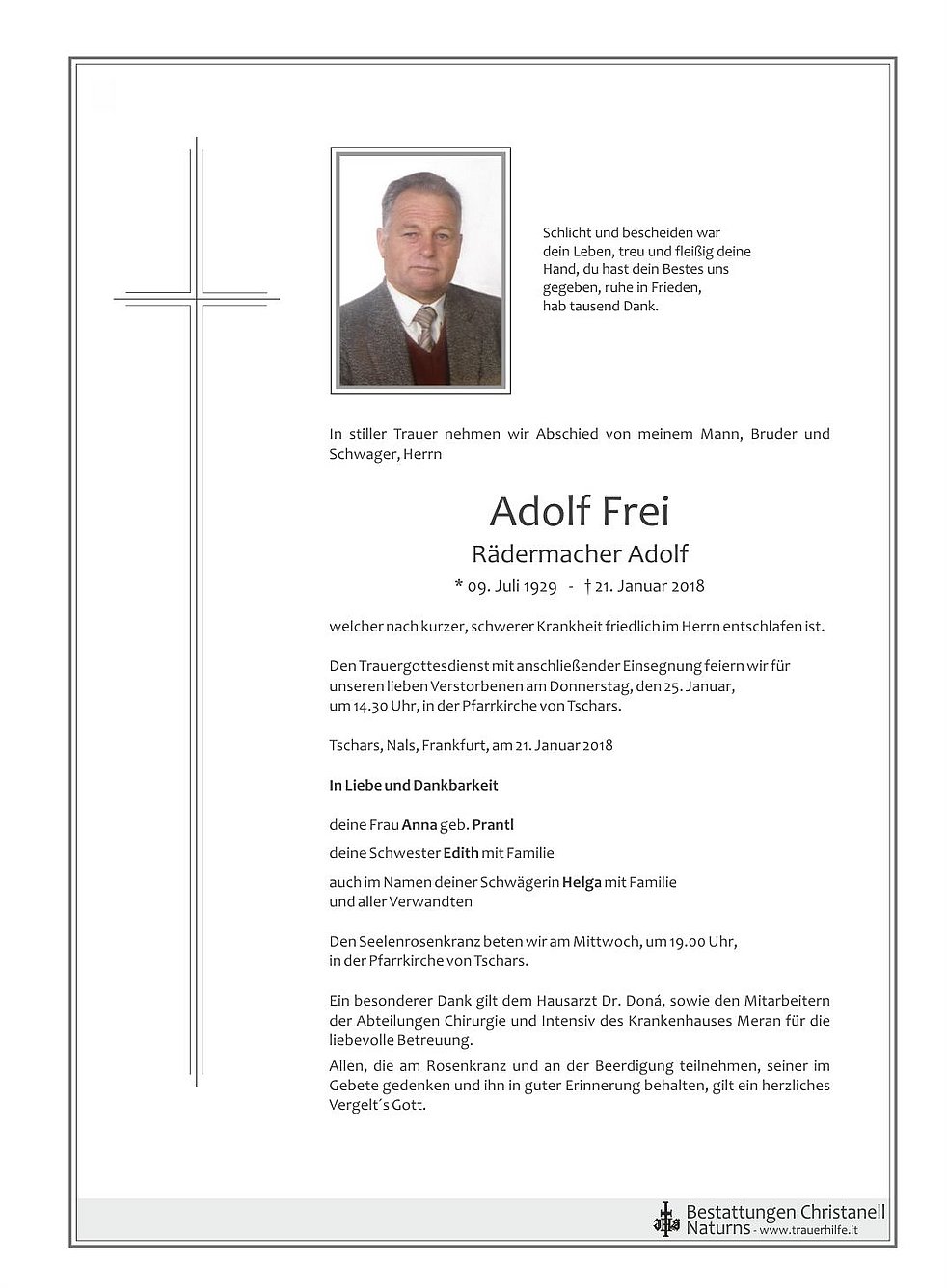 Allen, die am Rosenkranz und an der Beerdigung teilnehmen, seiner im Gebete gedenken und ihn in guter Erinnerung behalten, gilt ein herzliches Vergelt´s Gott.