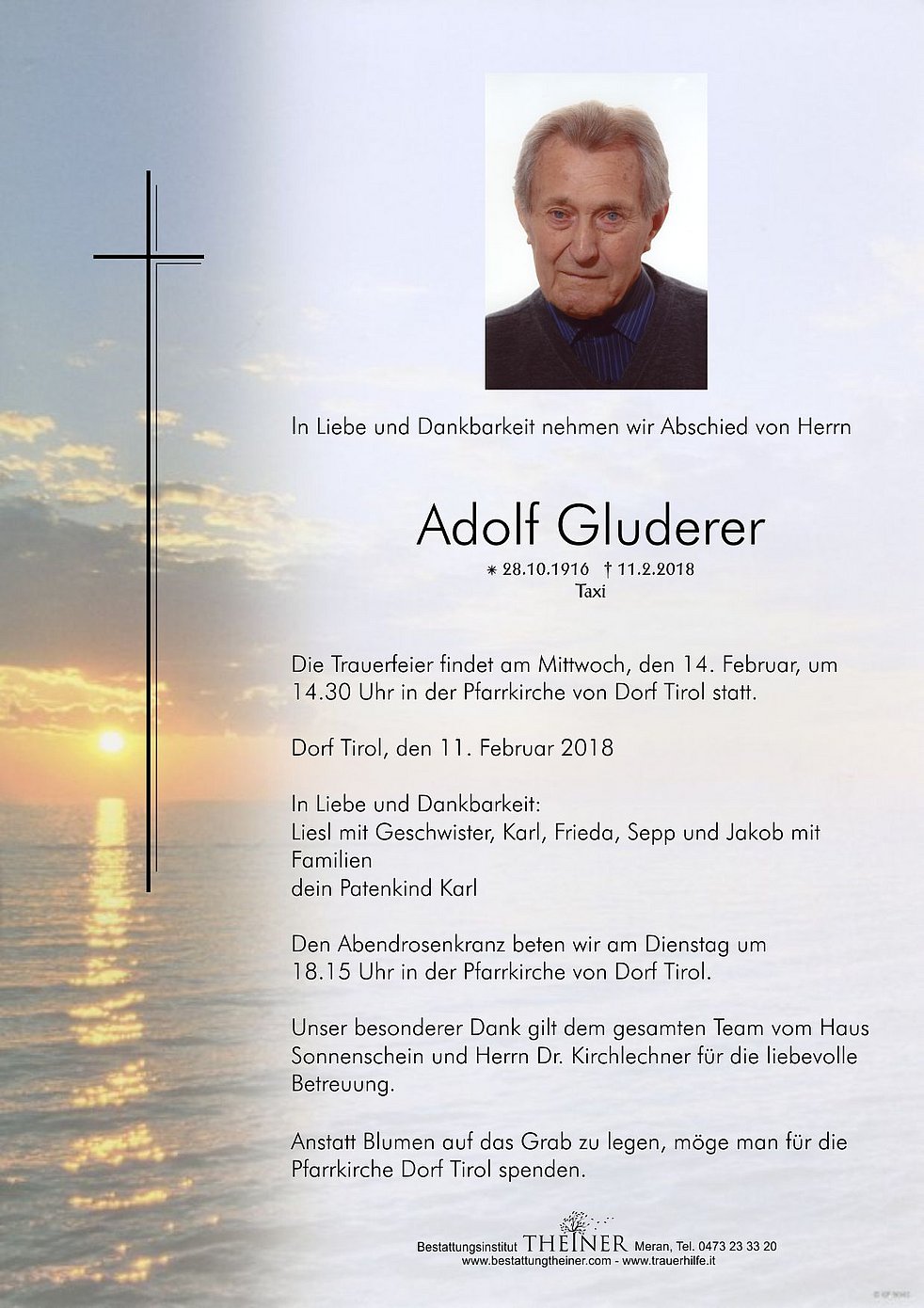 Anstatt Blumen auf das Grab zu legen, möge man für die Pfarrkirche Dorf Tirol spenden.