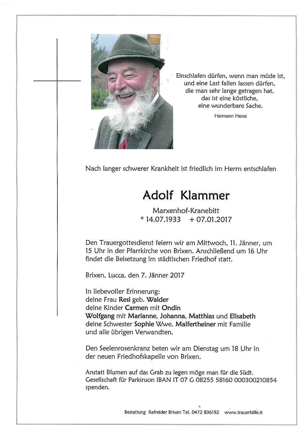 Gedankt sei den Ärzten und dem Pflegepersonal des Bürgerheimes von Brixen , 4. Wohnbereich, für die liebevolle Betreuung, sowie allen, die am Rosenkranz und an der Beerdigung teilnehmen.