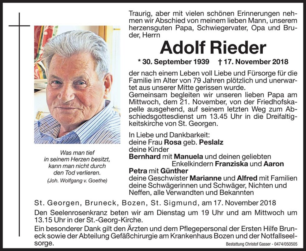 St. Georgen, Bruneck, Bozen, St. Sigmund, am 17. November 2018