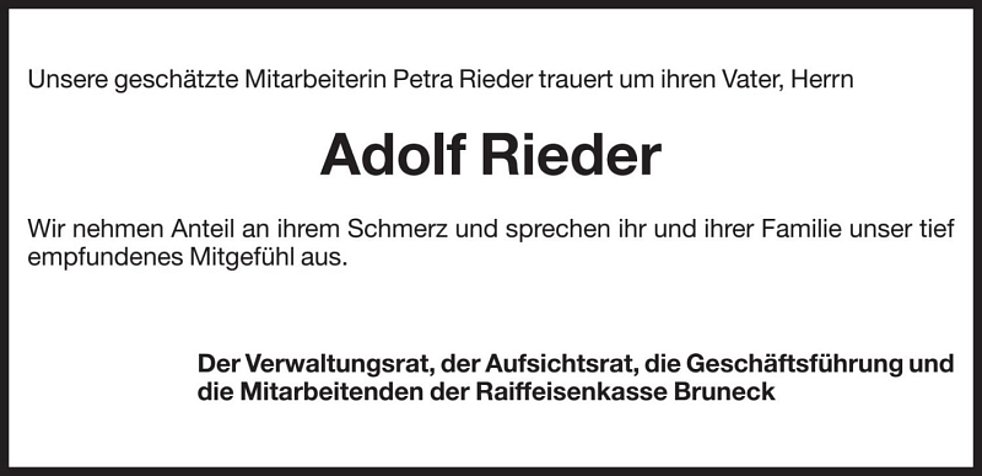Ein besonderer Dank gilt den Ärzten und dem Pflegepersonal der Ersten Hilfe Bruneck sowie der Abteilung Gefäßchirurgie am Krankenhaus Bozen und der Notfallseelsorge.