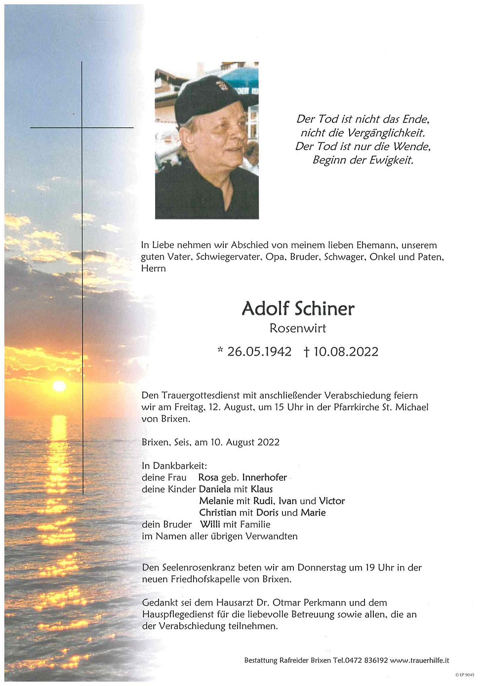 Den Trauergottesdienst mit anschließender Verabschiedung feiern wir am Freitag, 12. August, um 15 Uhr in der Pfarrkirche St. Michael von Brixen.