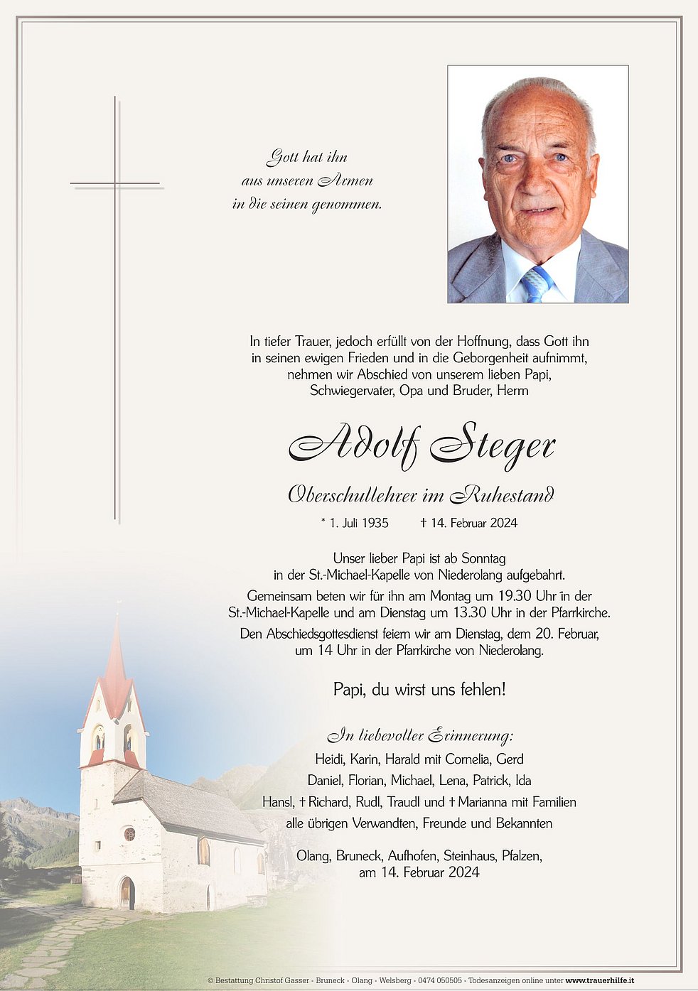 in der St.-Michael-Kapelle von Niederolang aufgebahrt.