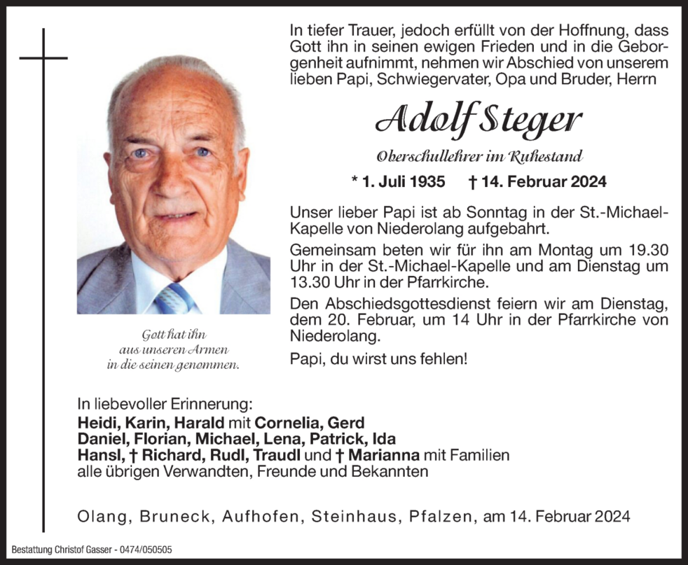 In tiefer Trauer, jedoch erfüllt von der Hoffnung, dass Gott ihn