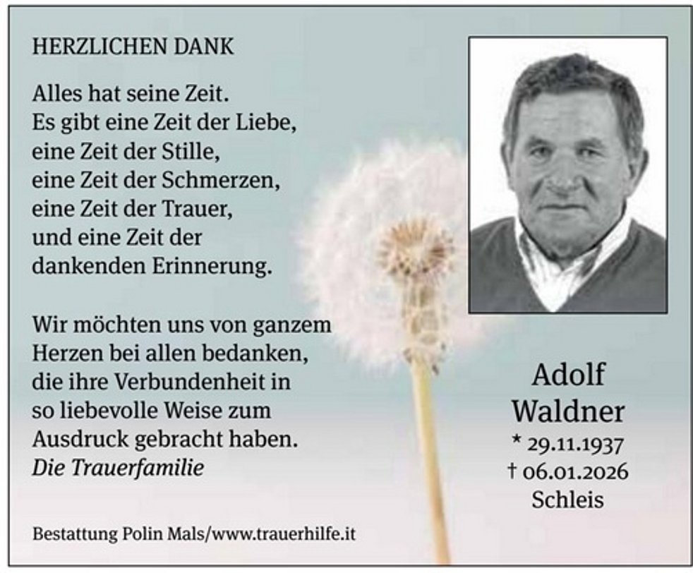 Vergelt‘s Gott für die Anteilnahme und das Gebet.