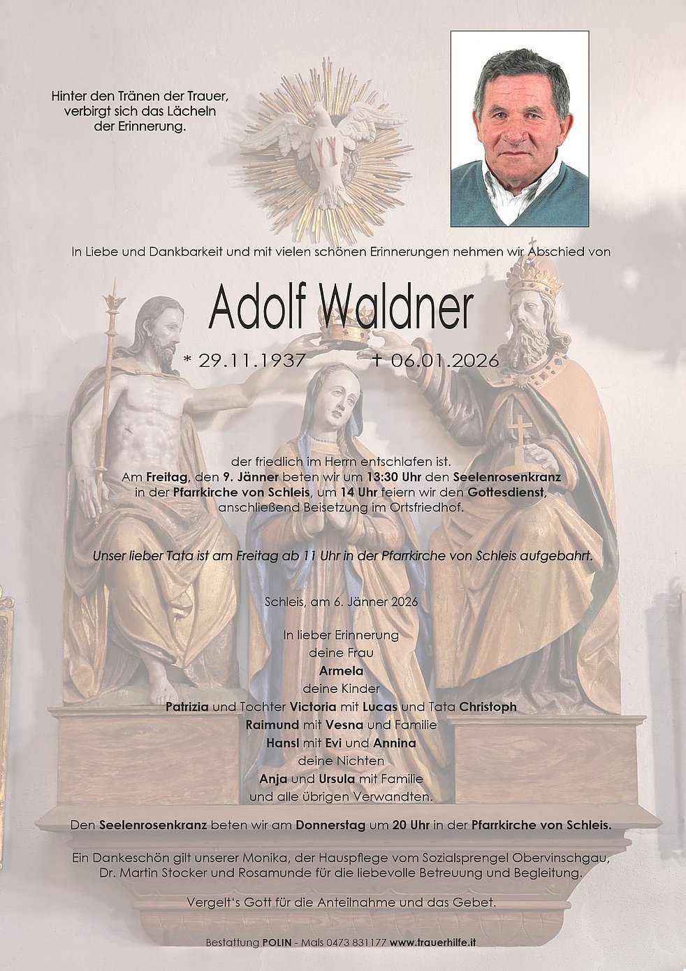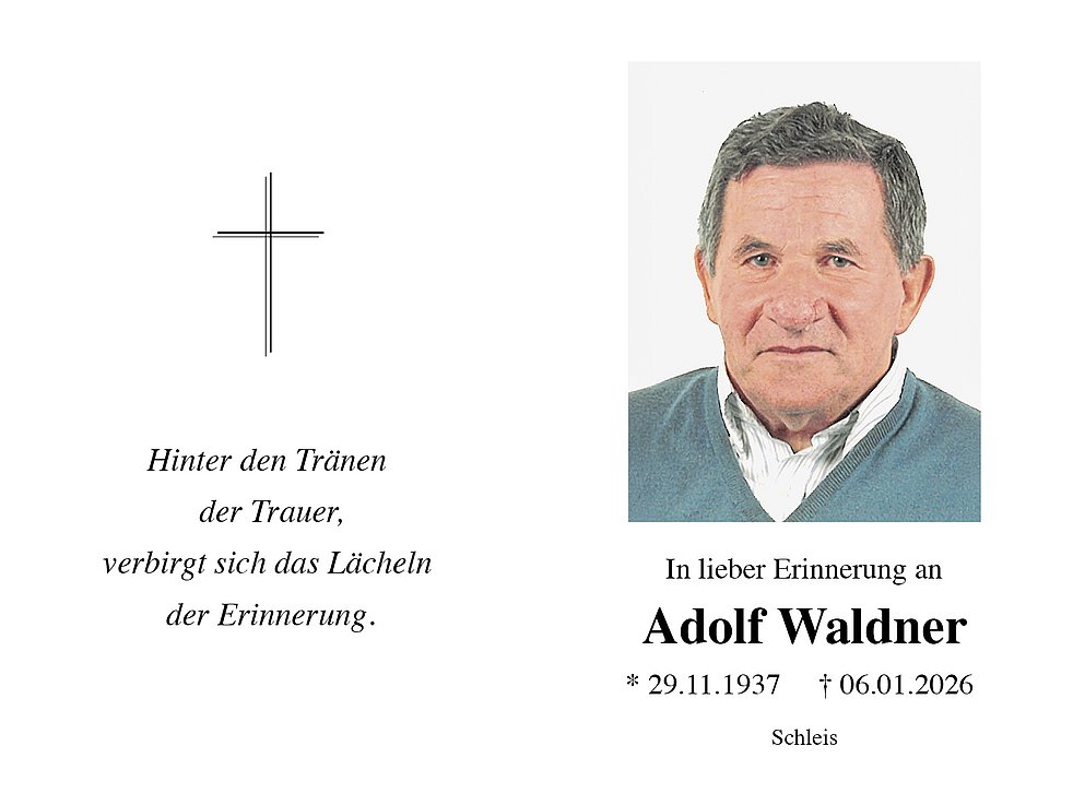 Unser lieber Tata ist am Freitag ab 11 Uhr in der Pfarrkirche von Schleis aufgebahrt.