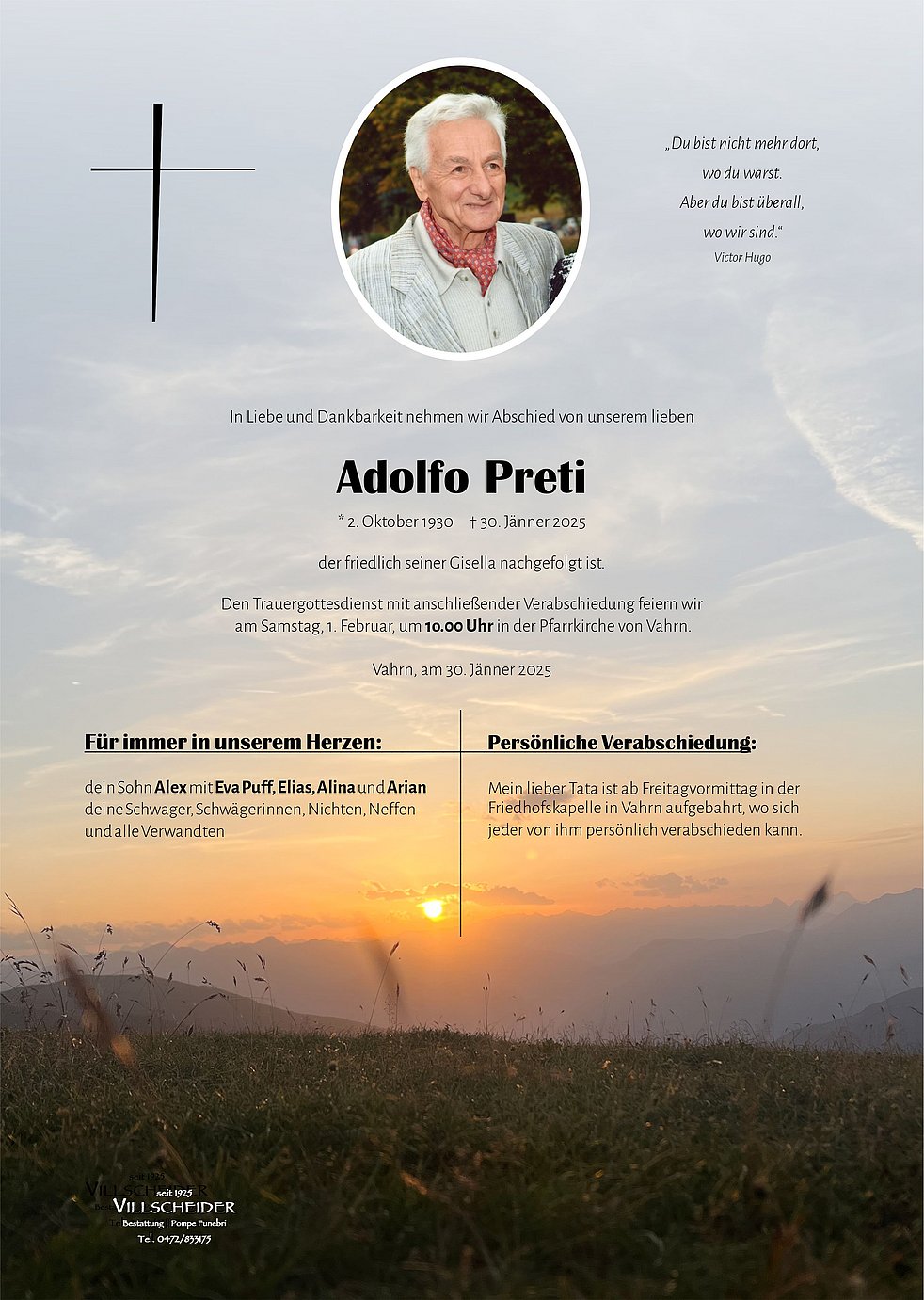 Zum Tod eures lieben nonno,möchten wir euch unser aufrichtiges Beileid ausdrücken.Lotte ,Walter,Martin und Magdalena
