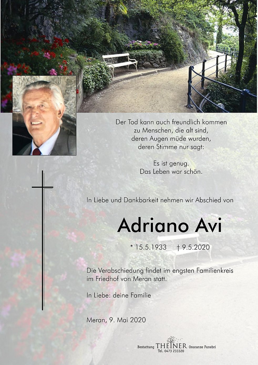Le esequie avranno luogo in forma privata al cimitero di Merano.