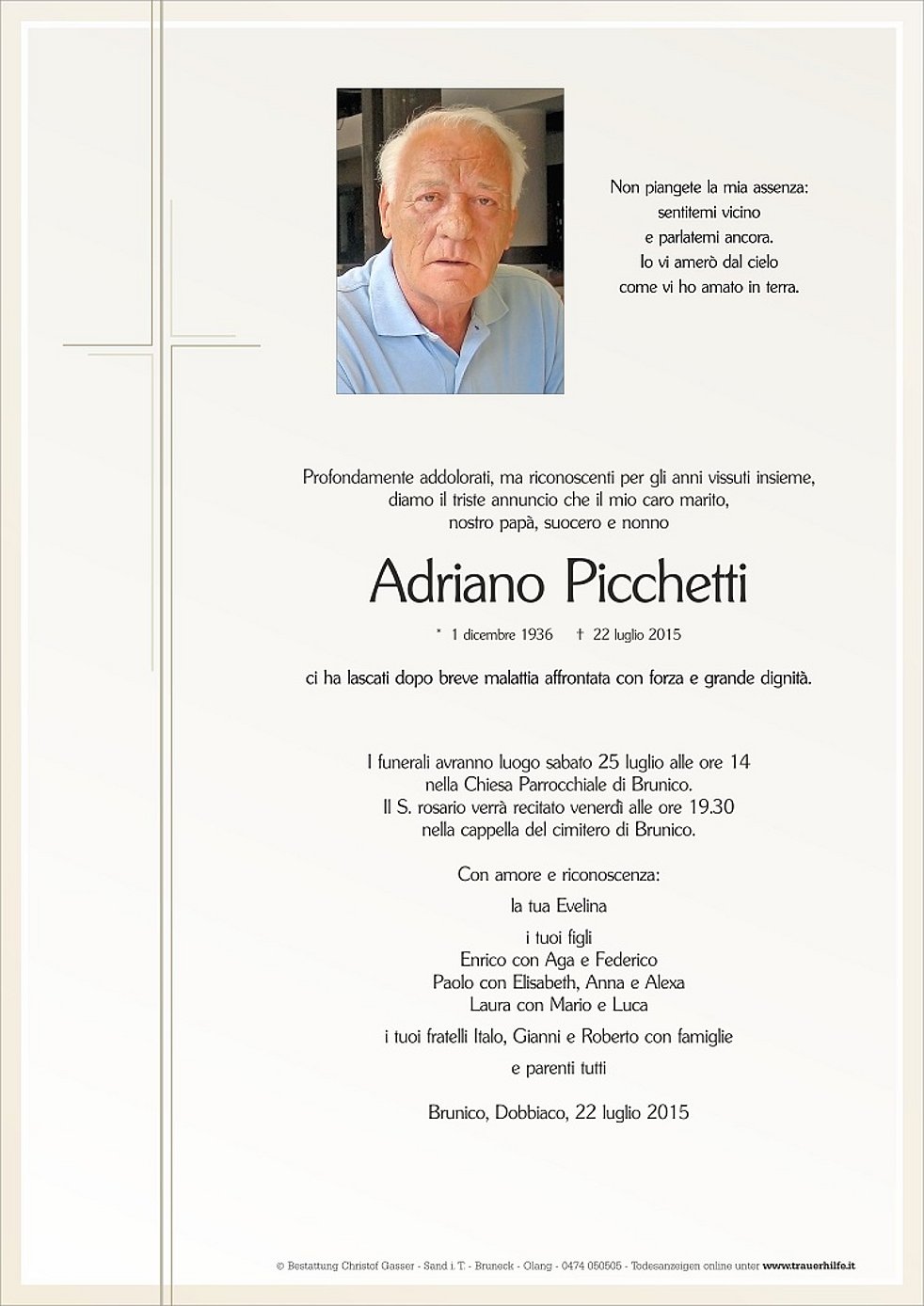 I funerali avranno luogo sabato 25 luglio alle ore 14