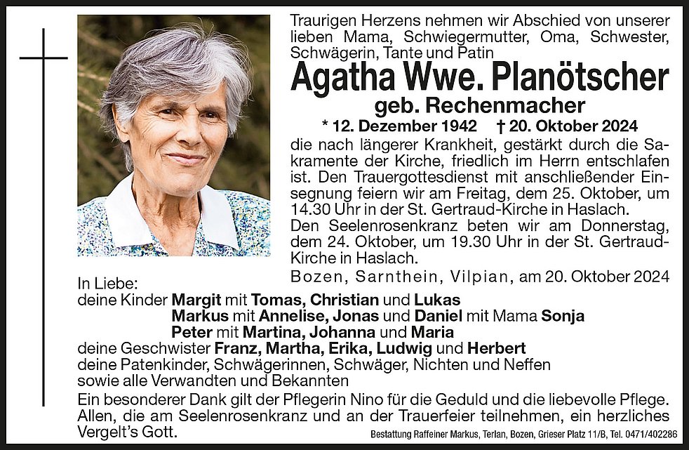 Den Trauergottesdienst mit anschließender Einsegnung feiern wir am Freitag, dem 25. Oktober, um 14.30 Uhr in der St. Gertraud-Kirche in Haslach.