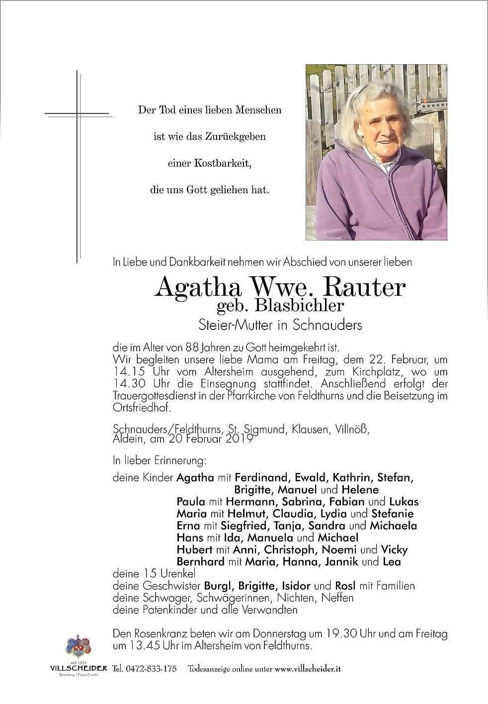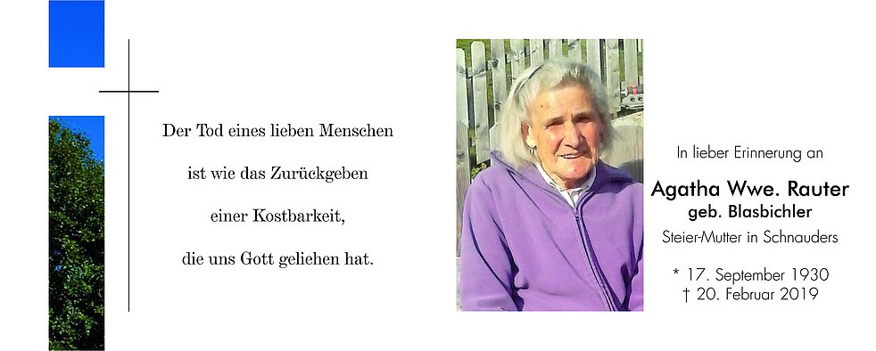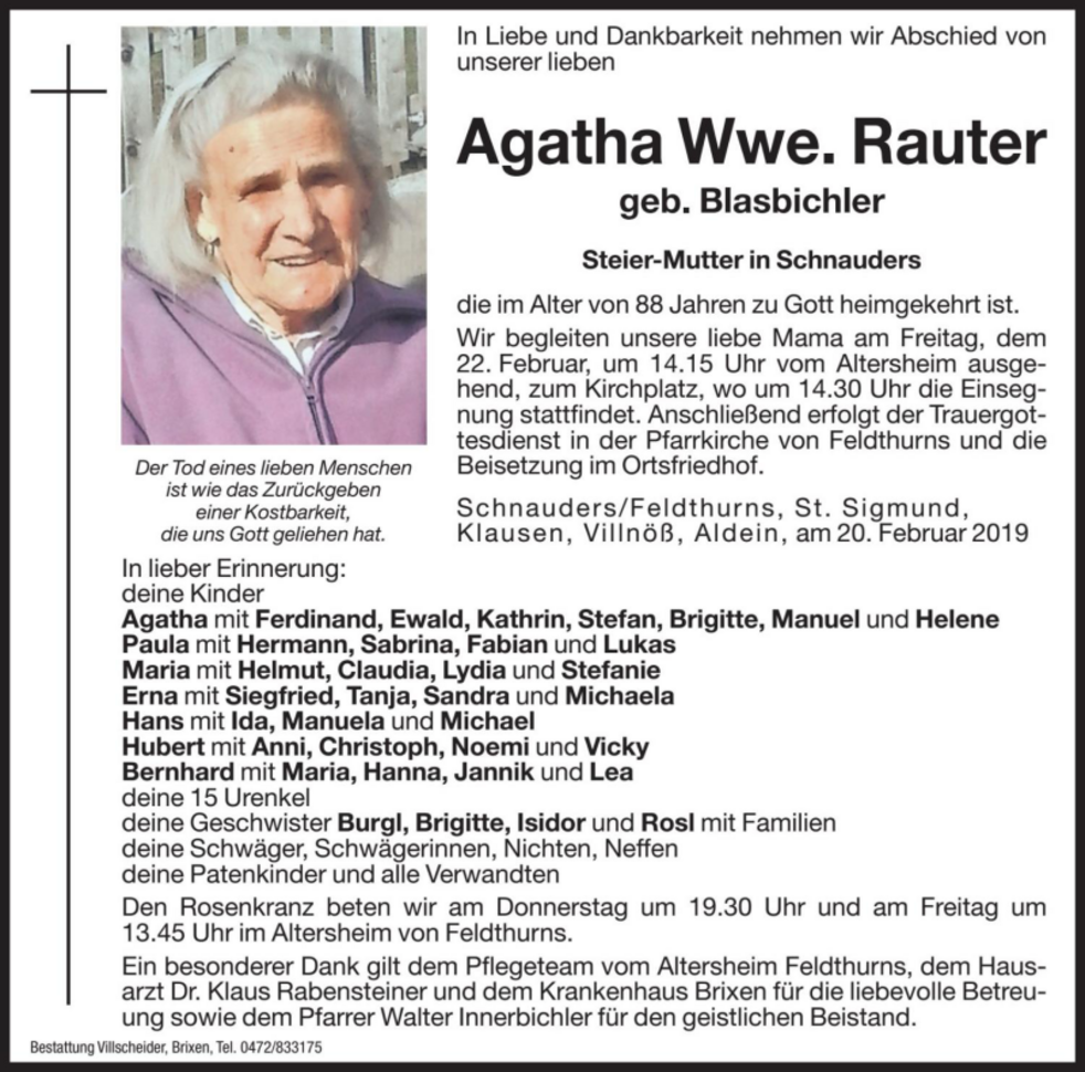Begräbnisgottesdienst: 22.02. - 14:30 Uhr Feldthurns