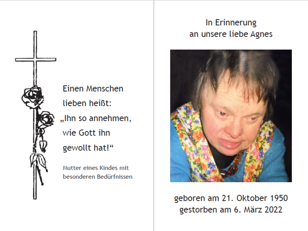 Wir danken allen, die mit uns Agnes verabschieden.