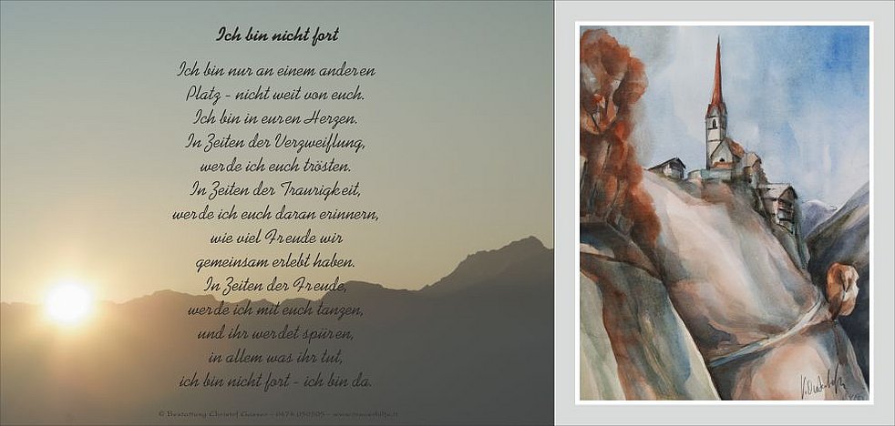 Allen, die unsere liebe Mamme auf ihrem letzten Weg begleiten, ihrer im Gebet gedenken und sie in lieber Erinnerung behalten, danken wir von Herzen.