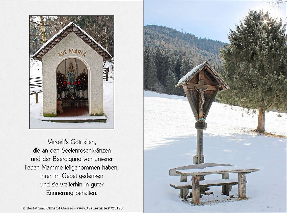 Ein besonderer Dank gilt den Ärzten und den Mitarbeitern vom Wohn- und Pflegeheim Bruneck für die liebevolle und fürsorgliche Betreuung.