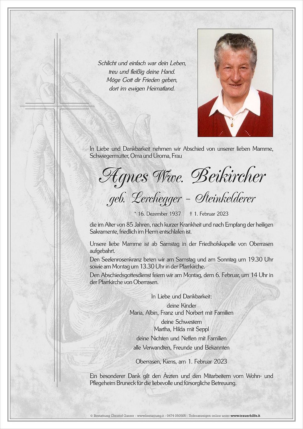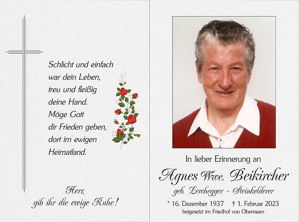 Unsere liebe Mamme ist ab Samstag in der Friedhofskapelle von Oberrasen aufgebahrt.