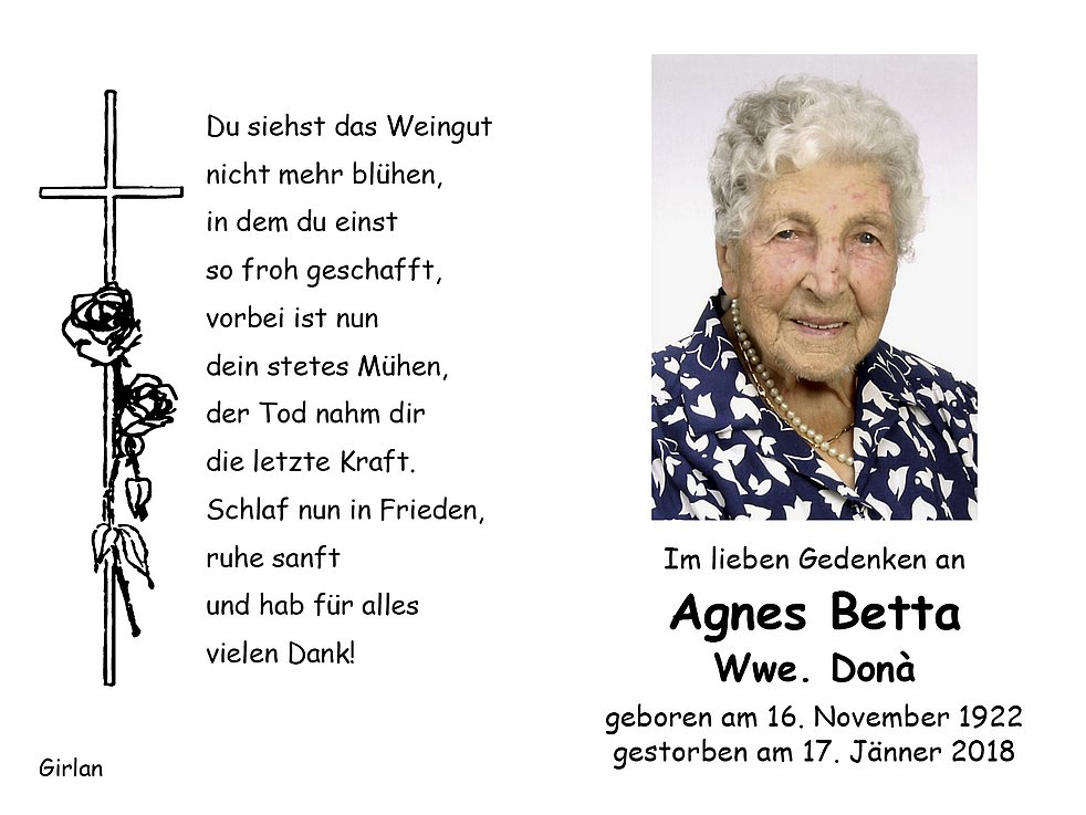 Agnes Wwe. Donà geb. Betta