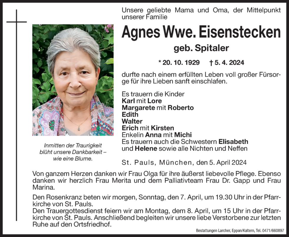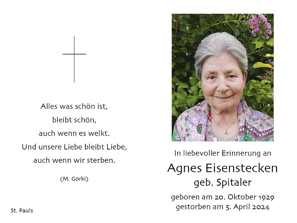 Agnes Wwe. Eisenstecken geb. Spitaler