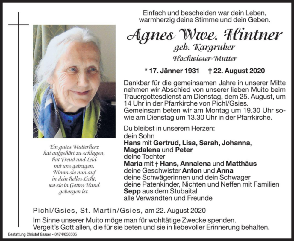 Agnes Wwe. Hintner