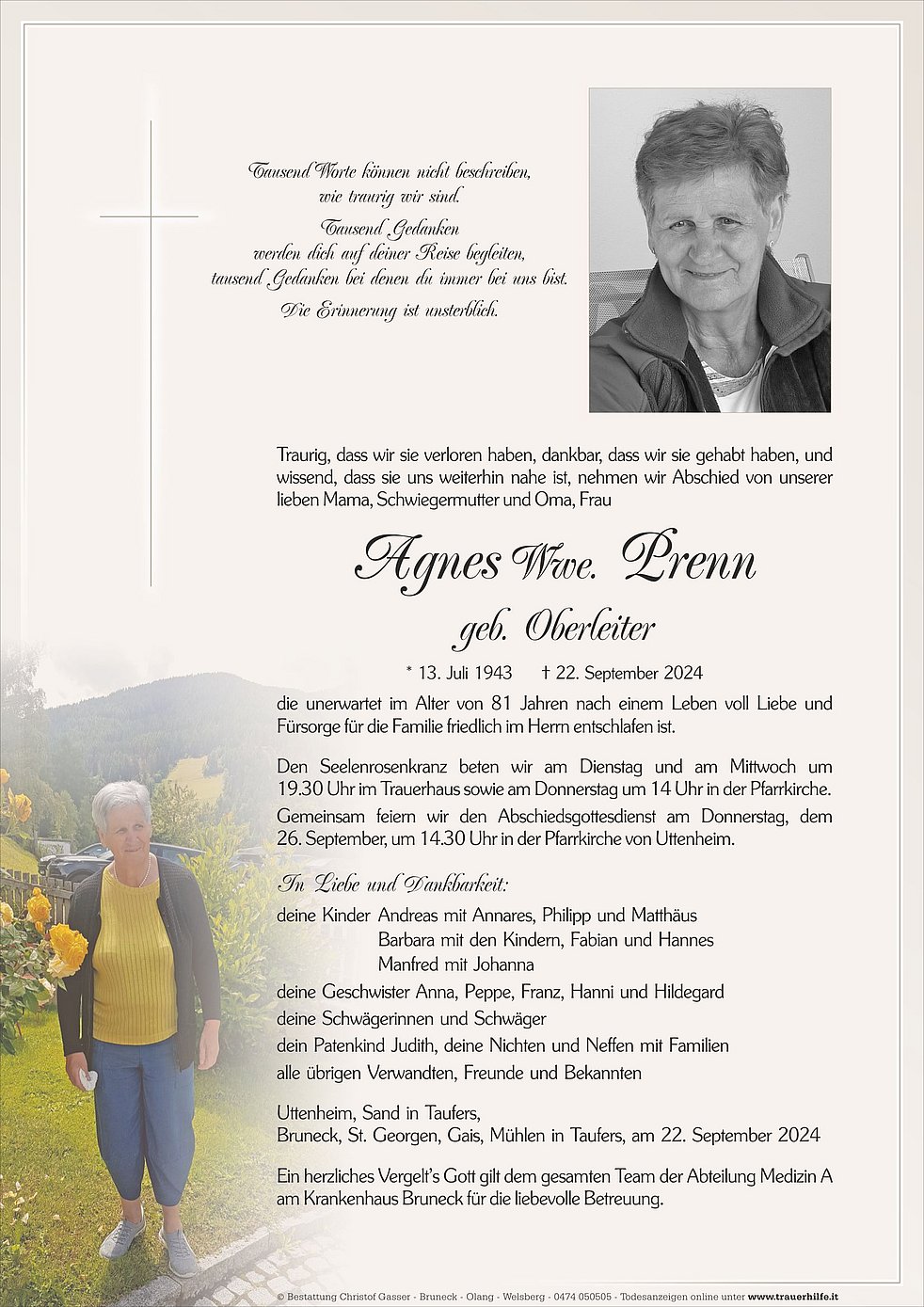 Traurig, dass wir sie verloren haben, dankbar, dass wir sie gehabt haben, und wissend, dass sie uns weiterhin nahe ist, nehmen wir Abschied von unserer lieben Mama, Schwiegermutter und Oma, Frau