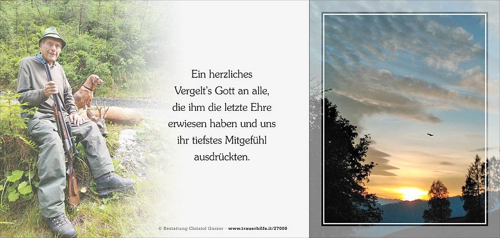 Ein besonderer Dank gilt der Hausärztin Frau Dr. Berta Marcher, Frau Dr. Monika Hilber mit ihrem Team der Abteilung Palliativ, den Sprengelschwestern, dem gesamten Personal der Abteilung Medizin am Krankenhaus Bruneck sowie dem Weißen Kreuz.