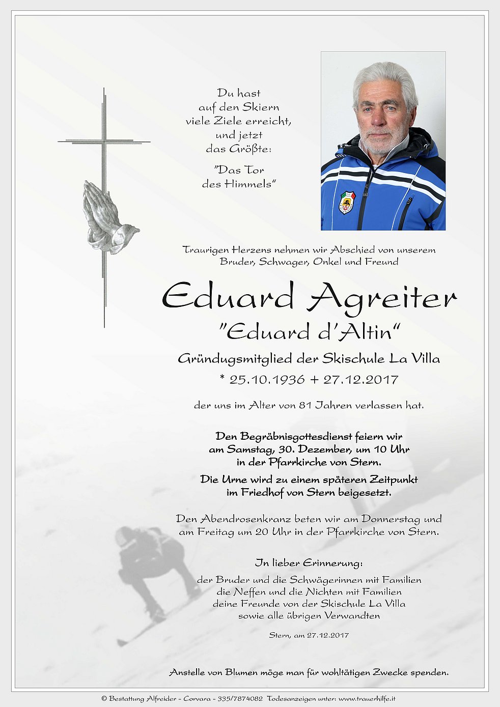 Den Begräbnisgottesdienst feiern wir am Samstag, 30. Dezember, um 10 Uhr in der Pfarrkirche von Stern.