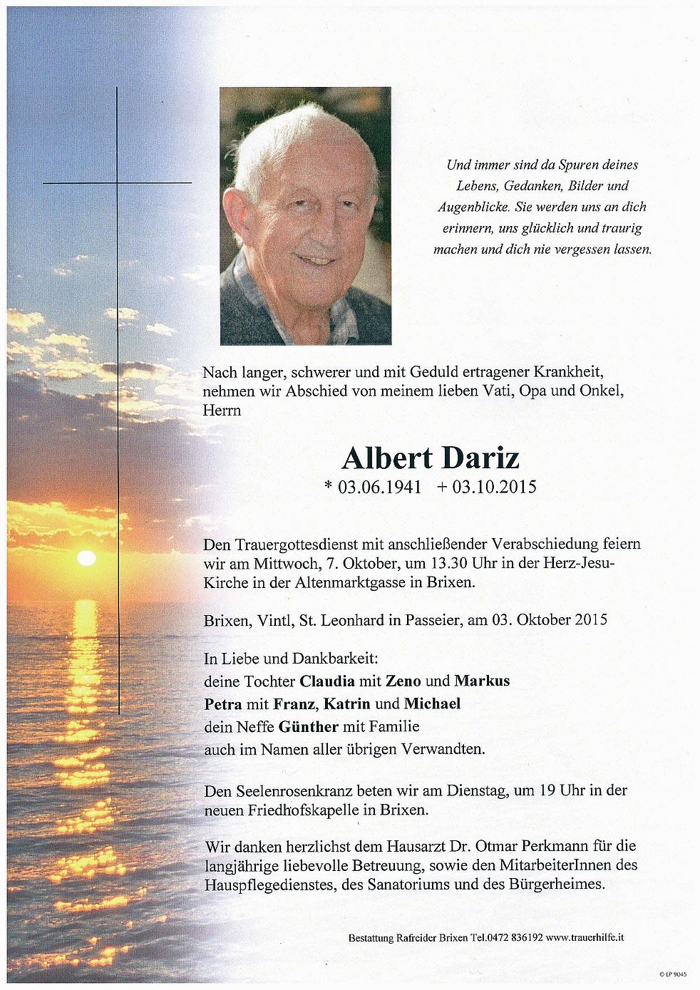 Wir danken herzlichst dem Hausarzt Dr. Otmar Perkmann für die langjährige liebevolle Betreuung, sowie den MitarbeiterInnen des Hauspflegedienstes, des Sanatoriums und des Bürgerheimes.