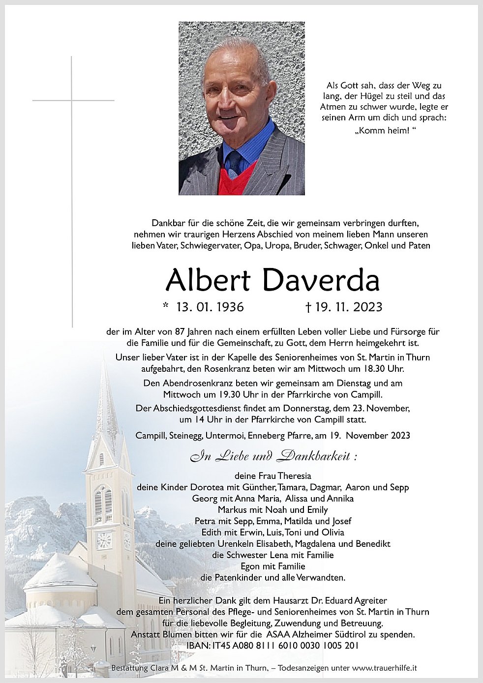 Begräbnisgottesdienst: 23.11. - 14:00 Uhr Campill