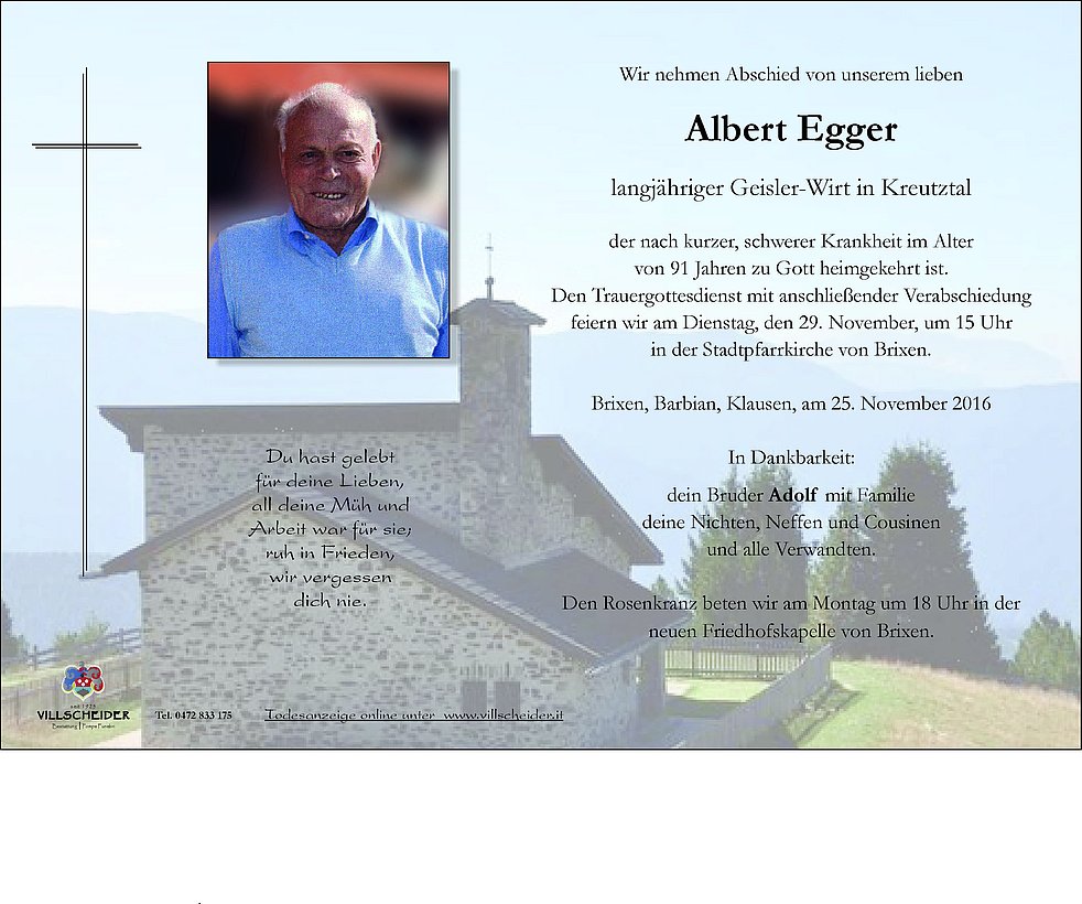Den Trauergottesdienst mit anschließender Verabschiedung feiern wir am Dienstag, den 29. November, um 15 Uhr