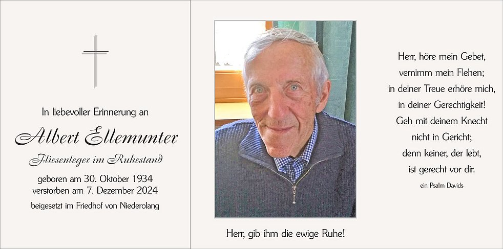 Unser Albert ist ab Mittwochnachmittag in der Pfarrkirche von Niederolang aufgebahrt.