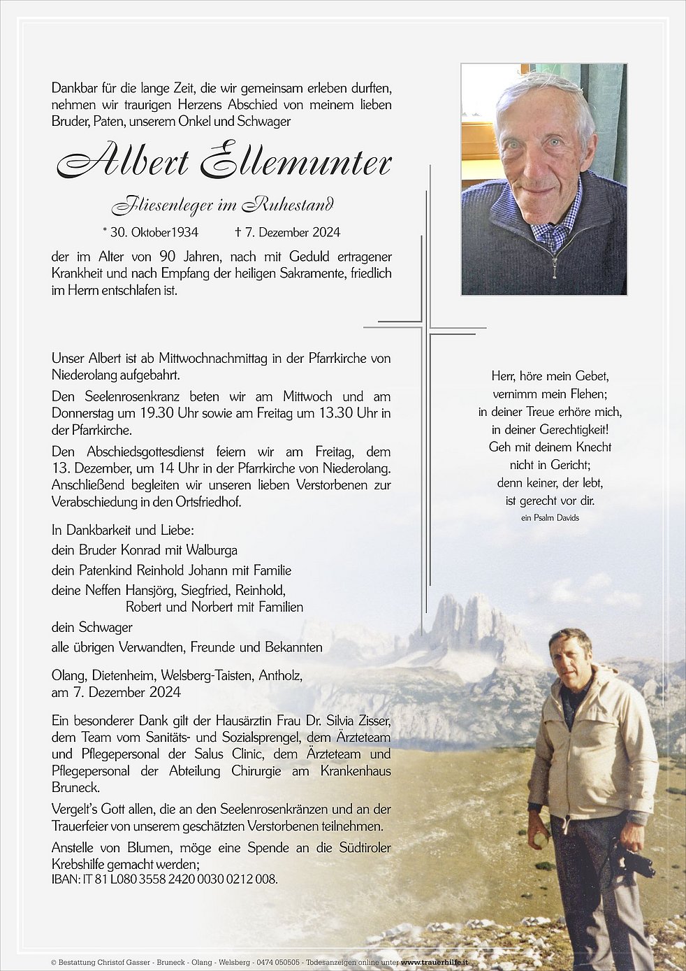Anstelle von Blumen, möge eine Spende an die Südtiroler Krebshilfe gemacht werden;
