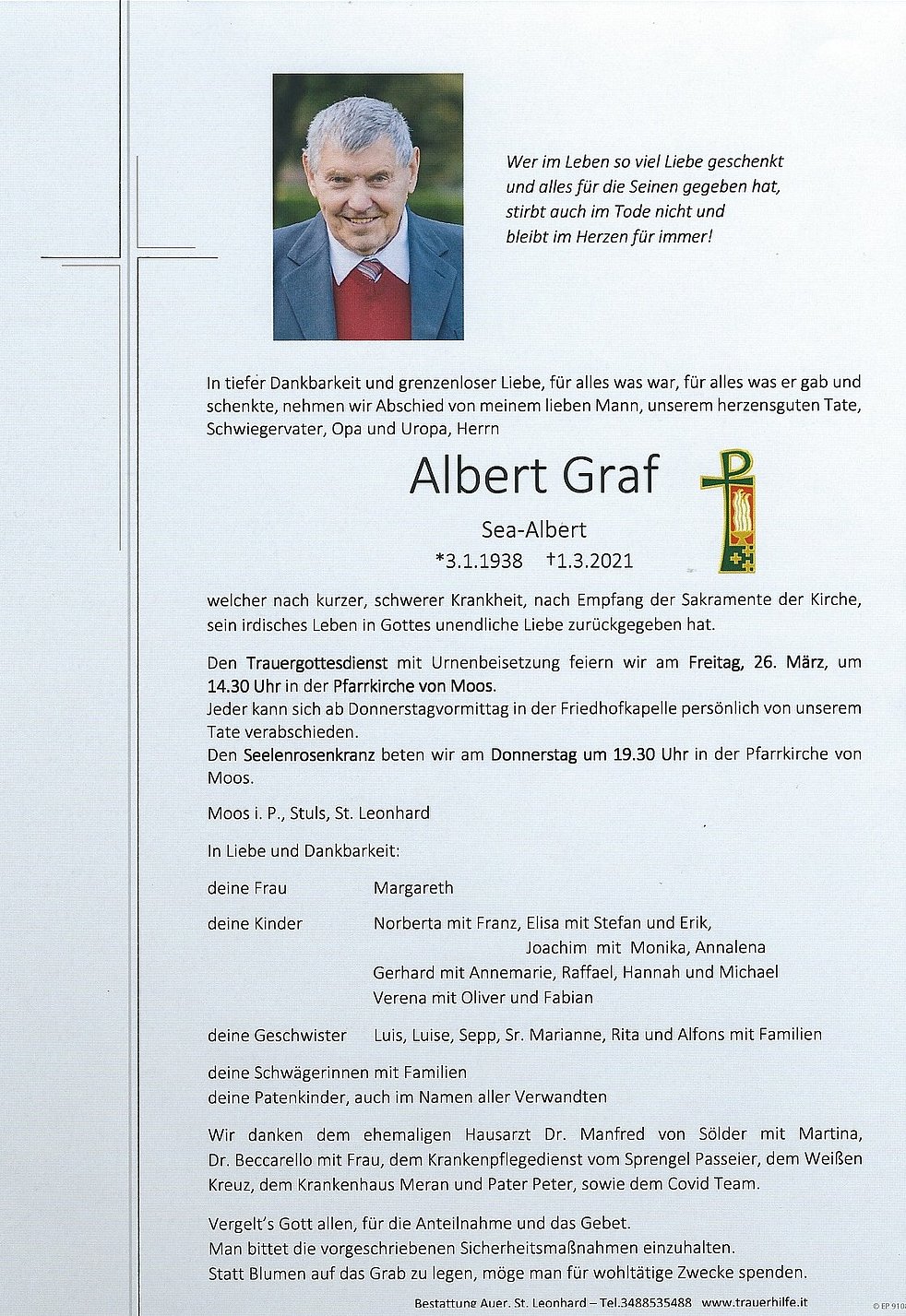 Den Trauergottesdienst mit Urnenbeisetzung feiern wir am Freitag, 26. März, um 14.30 Uhr in der Pfarrkirche von Moos.