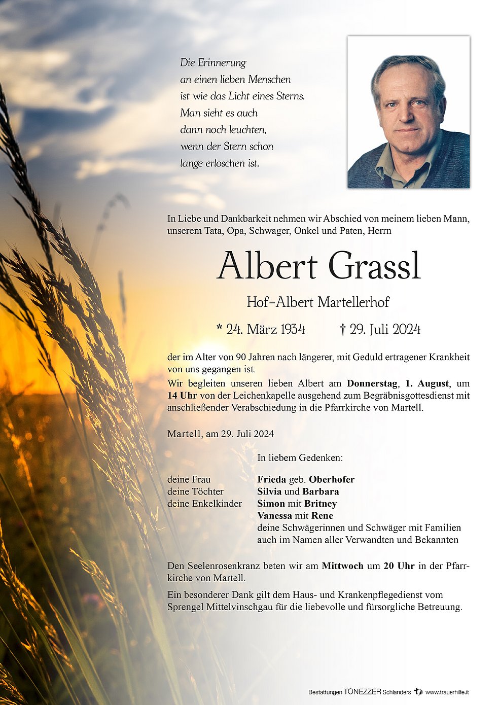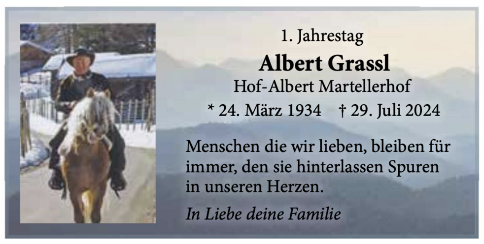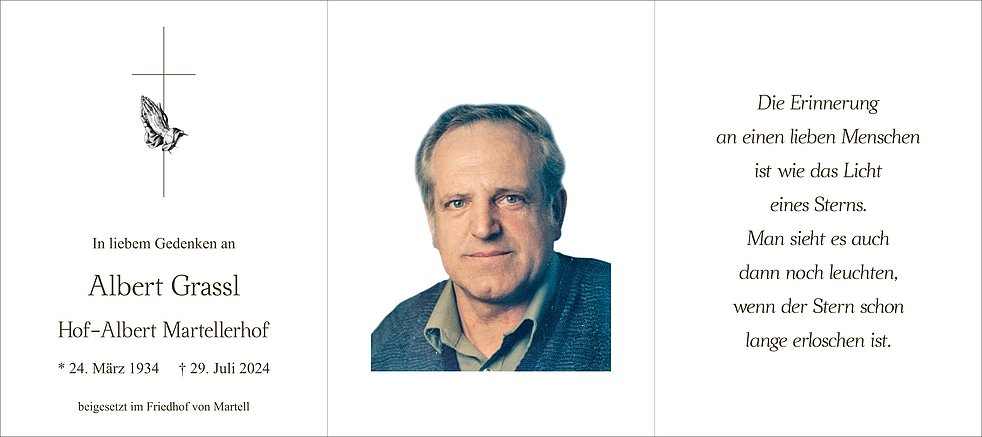 Begräbnisgottesdienst: 01.08. - 14:00 Uhr Pfarrkirche Martell