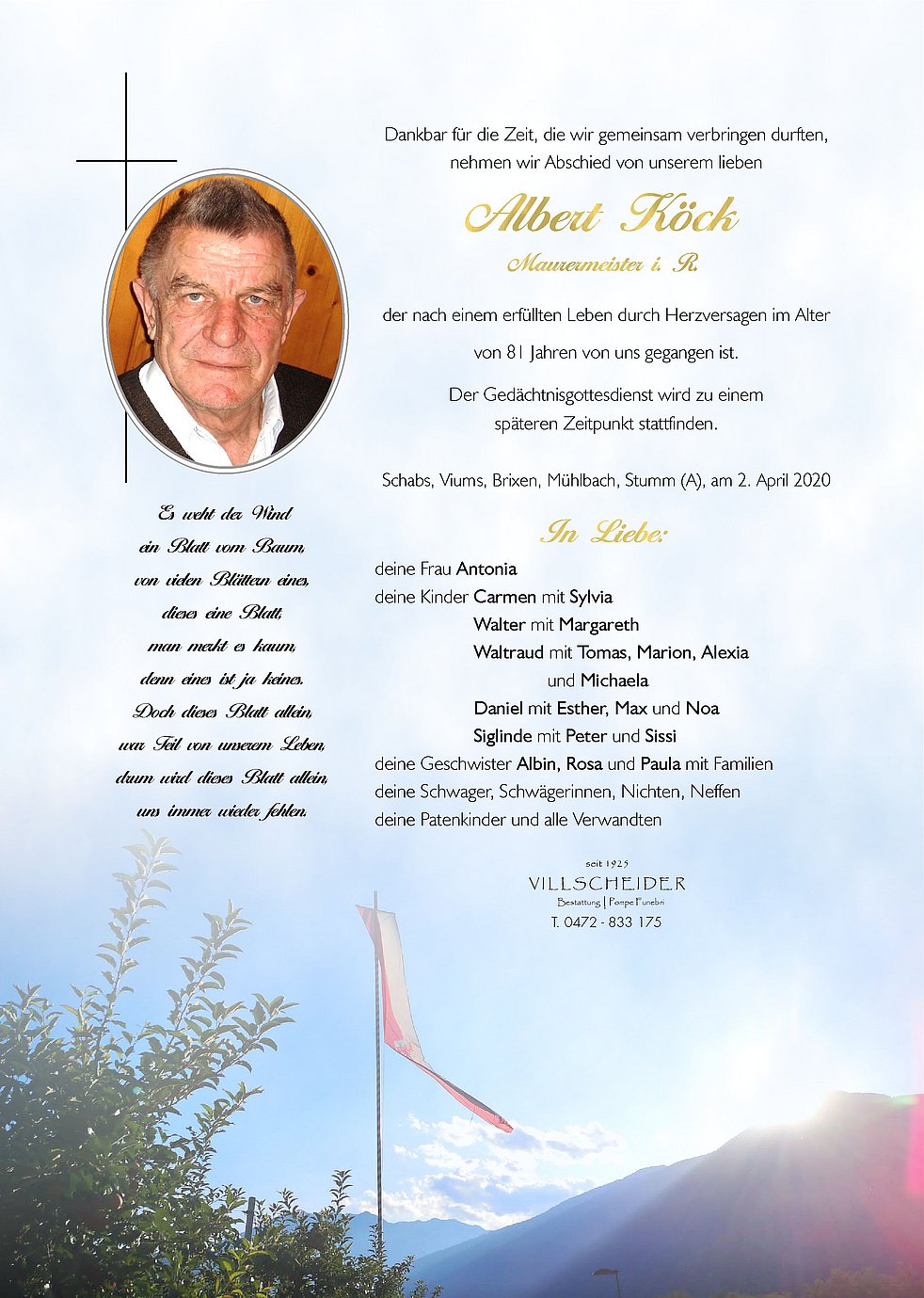 Lieber Albert danke für die Jahr zehnte lange Freundschaft und gemeinsame Zeit bei einen Karterle.Du warst ein geseliger Mensch mit großen Herzen.