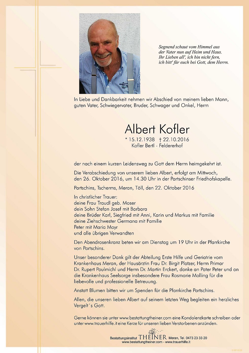 den 26. Oktober 2016, um 14.30 Uhr in der Partschinser Friedhofskapelle.