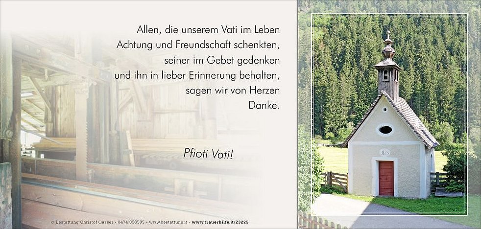 Unser lieber Vati ist ab Dienstagmittag in der Friedhofskapelle von Mühlwald aufgebahrt.