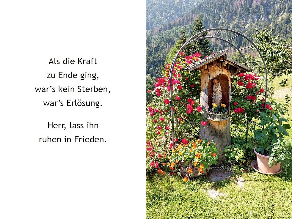 Im Voraus ein herzliches Vergelt’s Gott allen, die an den Rosenkränzen und an der Beerdigung teilnehmen.