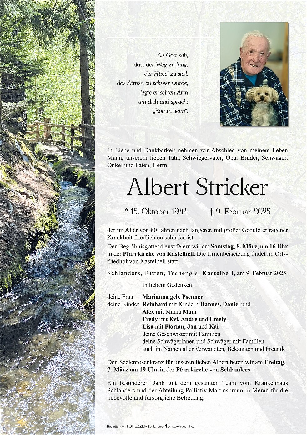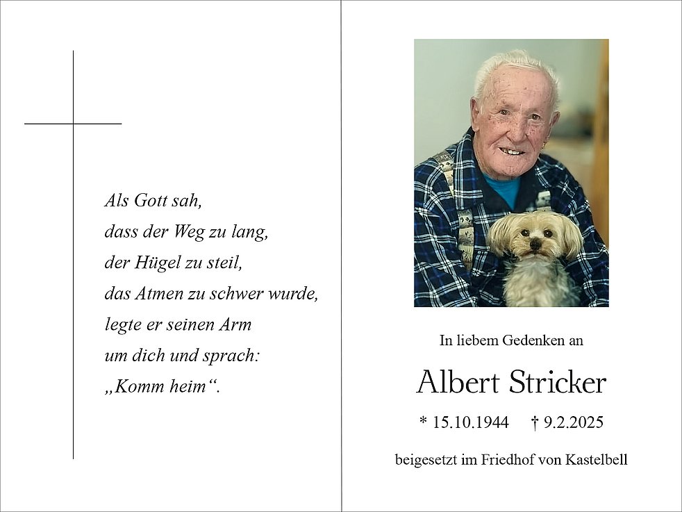 Mit Bestürzung habe ich vom Ableben von Albert gelesen. Ich habe ihn gekannt, wir waren vor längerer Zeit Arbeitskollegen. Er war ein "feiner" Mensch. Ich wünsche euch viel Kraft und Gottes reichen Segen in dieser schweren Zeit.