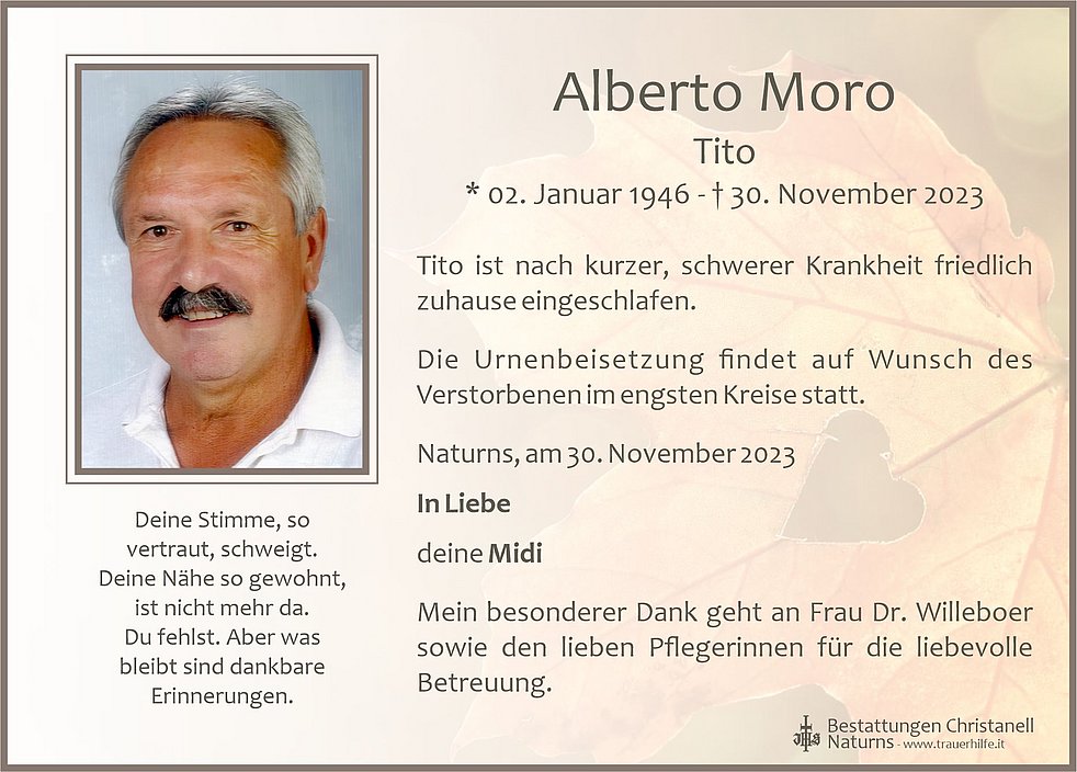 Unser aufrichtiges Beileid Fam. Werner Albrecht