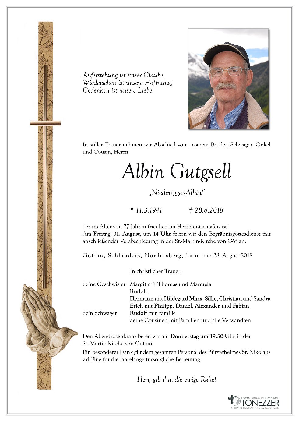 Am Freitag, 31. August, um 14 Uhr feiern wir den Begräbnisgottesdienst mit anschließender Verabschiedung in der St.-Martin-Kirche von Göflan.