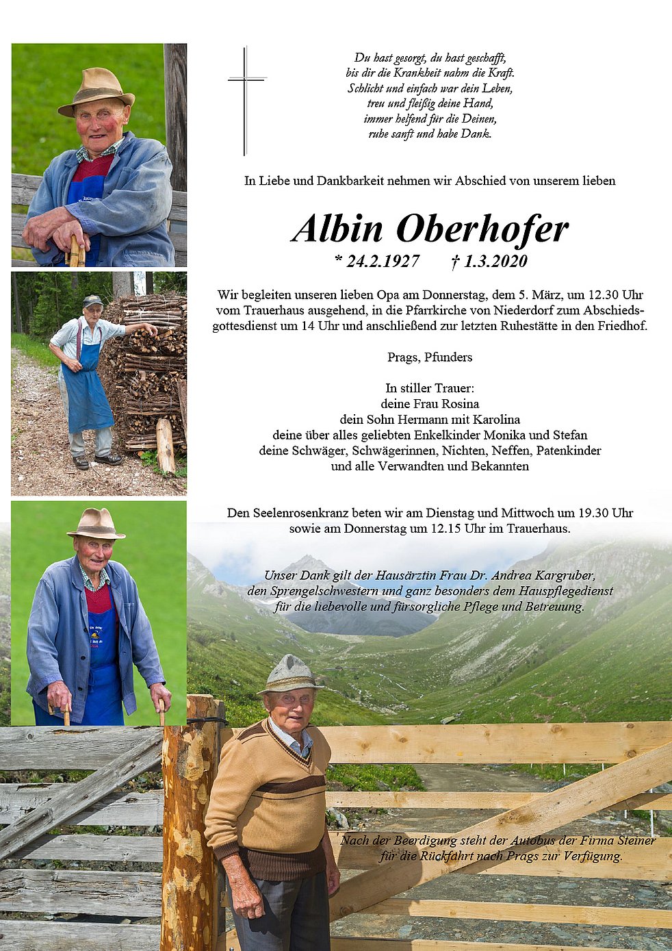Wir begleiten unseren lieben Opa am Donnerstag, dem 5. März, um 12.30 Uhr vom Trauerhaus ausgehend, in die Pfarrkirche von Niederdorf zum Abschieds-gottesdienst um 14 Uhr und anschließend zur letzten Ruhestätte in den Friedhof.